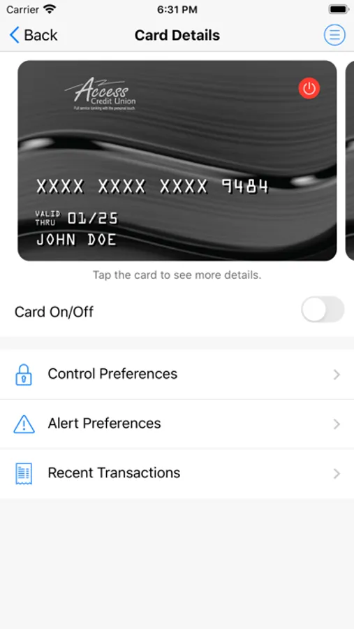 Access Debit Card Control protects your debit cards by sending transaction alerts and enabling you to define when, where and how your cards are used. Download to your smartphone, then set your preferences to monitor and manage your cards.