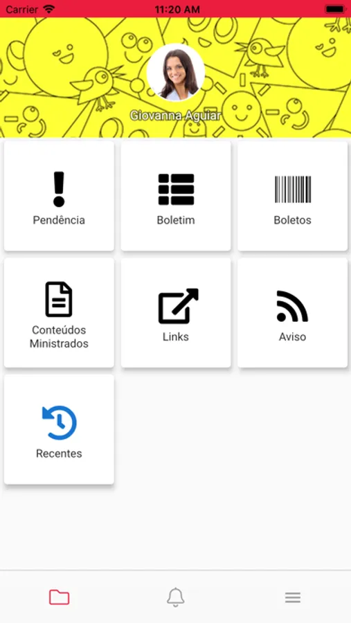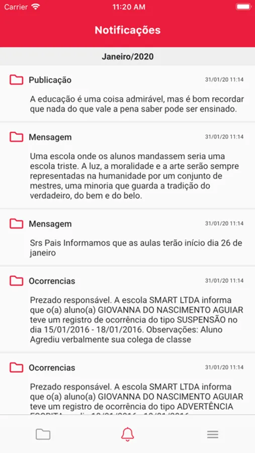 Avisos, ocorrências escolares, declarações de pagamento, enfim...