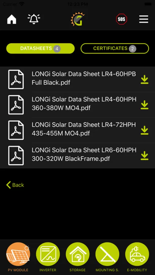 - trovare tutti i prodotti selezionati da Greensun suddivisi per brand e per tipologie (moduli, inverter, storage, strutture di montaggio, e-mobility);