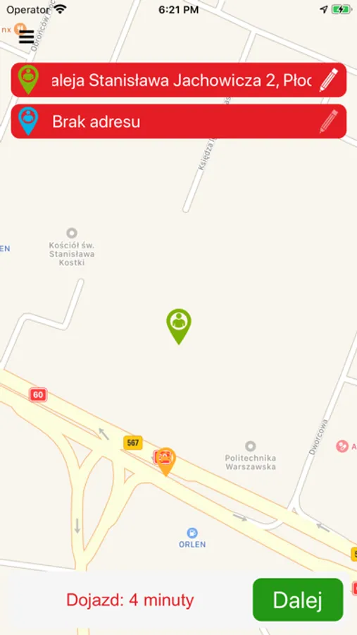 Application for ordering a taxi in Taxi Szóstki. Located in Płock Poland.
