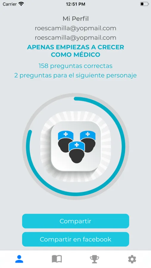 APP de preguntas médicas dividida en especialidades y Guías de Práctica Clínica donde puedes descubrir personaje e ítems (más de 400) cada 10 respuestas correctas.