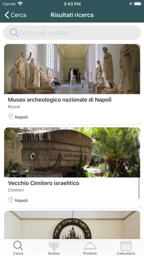 - Cerca siti culturali e attività kasher per città o in base alla tua posizione (Richiede accesso alla localizzazione)