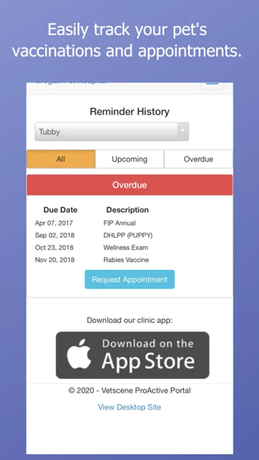 What can you do with your VetScene Patient Portal app? Manage your pets’ health schedules, view upcoming appointments, or follow up on healthcare recommendations. Receive appointment reminders, newsletters, vaccination reminders via email and/or text messages. Gain 24/7 access to your pets’ information. Request appointments, make boarding reservations, refill medications, or ask general questions. Upload your pet's best photo, contact your clinic, and subscribe to Text Messaging.