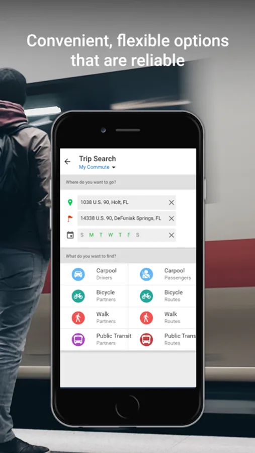RideOn is a quick and secure way to find your best commuting options in West Florida Region. Using your home and work addresses, you can find a carpool or bus that matches your schedule and connect with neighbors and colleagues looking for carpool, biking, or walking partners.