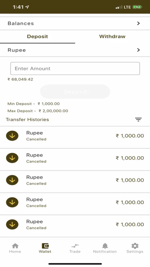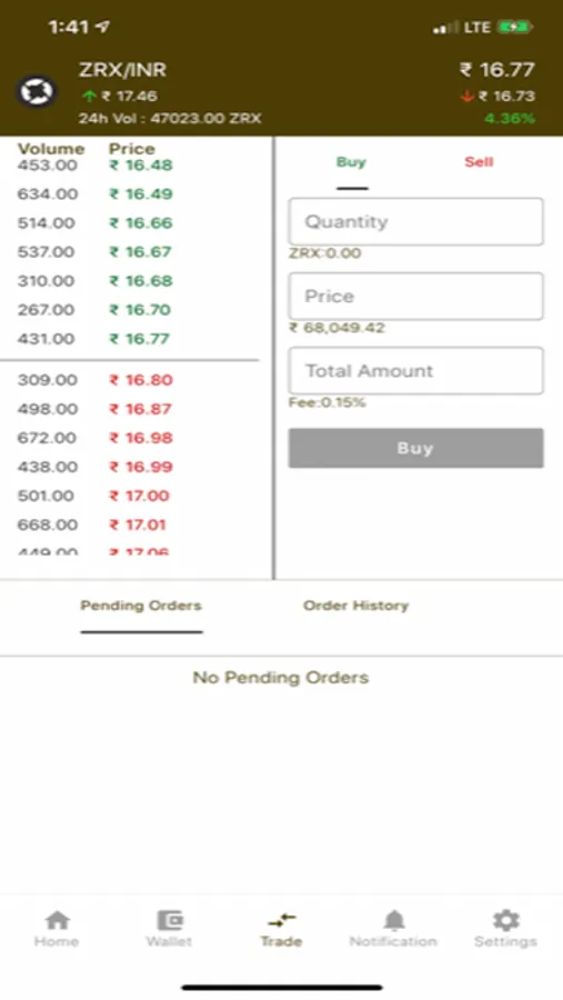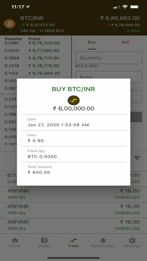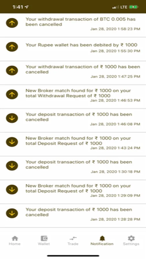 - Get in app push notifications whenever orders are filled or transfer request is completed.