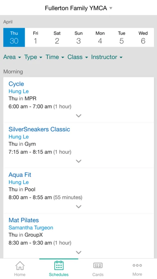 • Easily view schedules for each day and filter for the types of classes that you like.