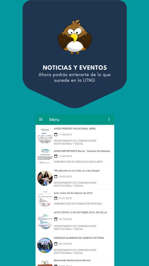 - Sección Noticias: en la cual se muestran las noticias mas relevantes de la UTNG.