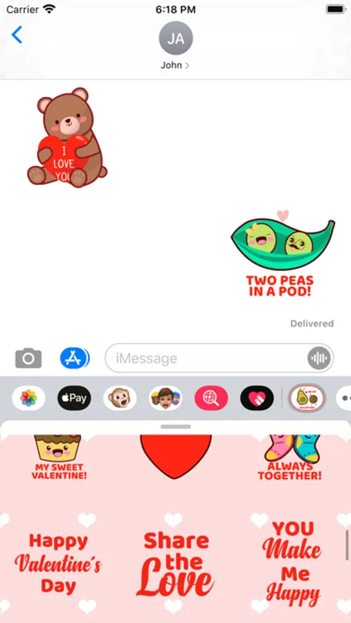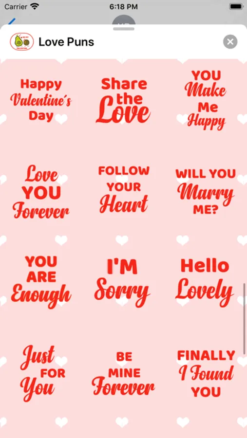 There is a wide variety of love Stickers you can choose from this app. Peel and stick them over other conversation bubbles, images, photos, even on other stickers.