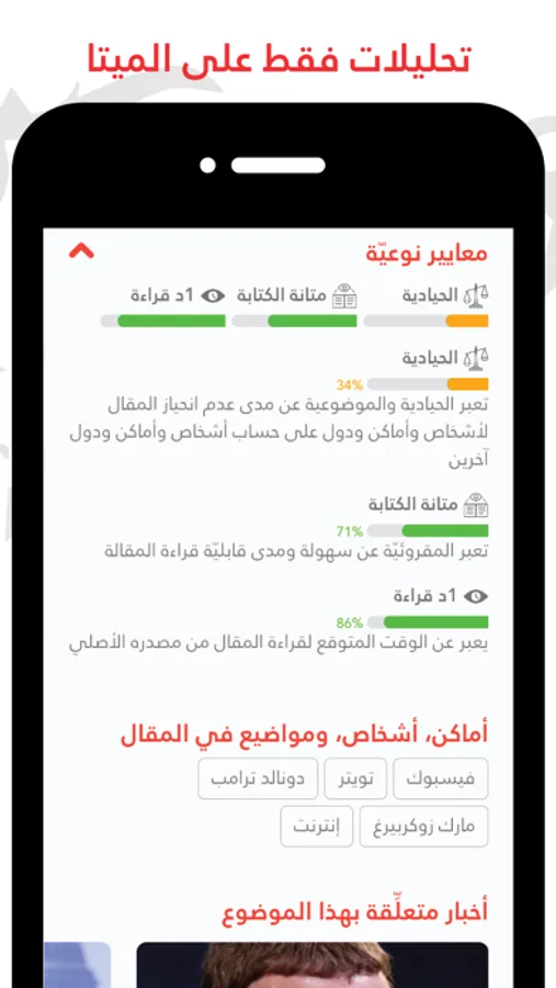 - خاصية التحليل لأي مقالة أو خبر عربي ضمن أو خارج الميتا