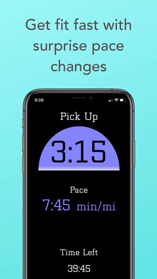 PacePlay comes with 2 modes, providing flexibility for every athlete to create the workout they want. PRESET INTERVALS lets you set the desired time for pick ups (faster pace) and slow downs (steady pace). SURPRISE PICKUPS lets you set maximum and minimum times for pickups, and the app takes care of the rest.