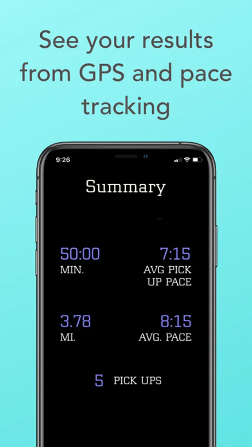 The app keeps track of your distance and pace throughout the workout. And at the end of the workout, you can see your overall pace as well as your pace during the faster pick ups.