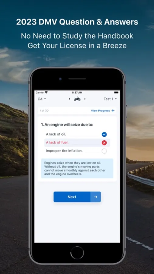 • State-Specific Tests: Because each state has different driving laws and restrictions, we've tailored our tests to each specific state. This isn't one of those generic DMV practice tests.
