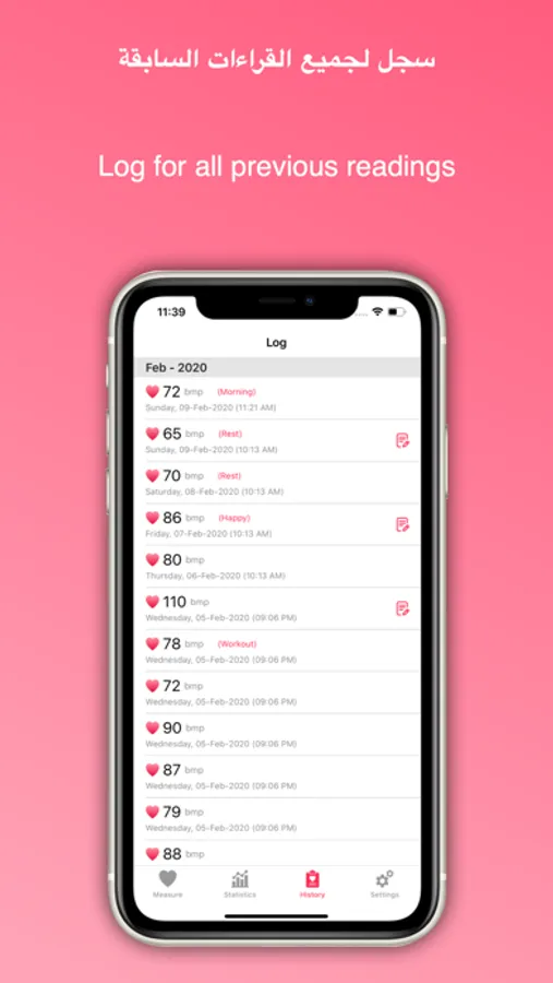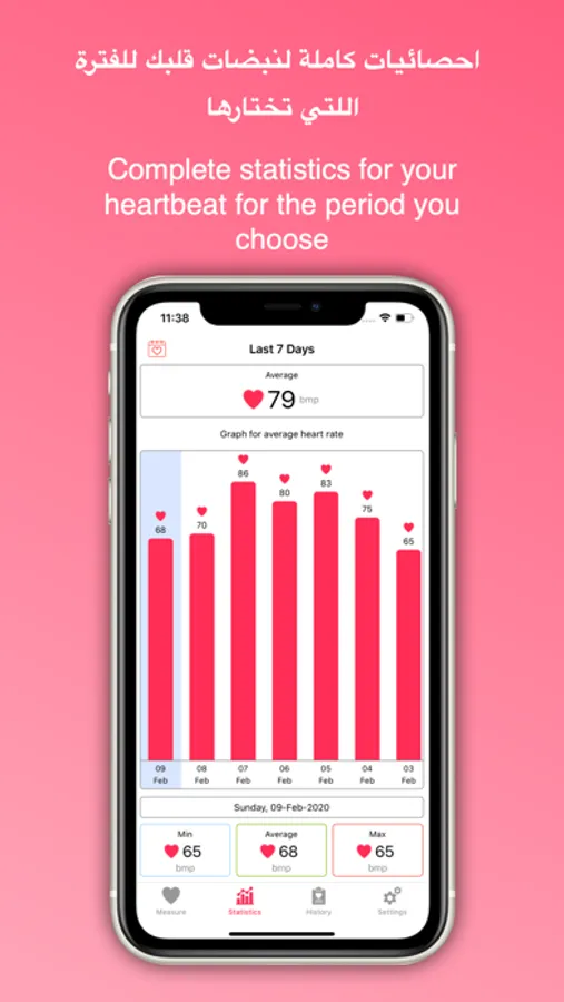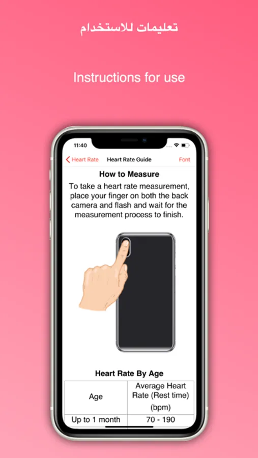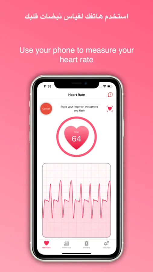 يقوم هذا التطبيق بتحويل هاتفك الى جهاز لقياس نبضات القلب كما أنه مرتبط بتطبيق صحتي.