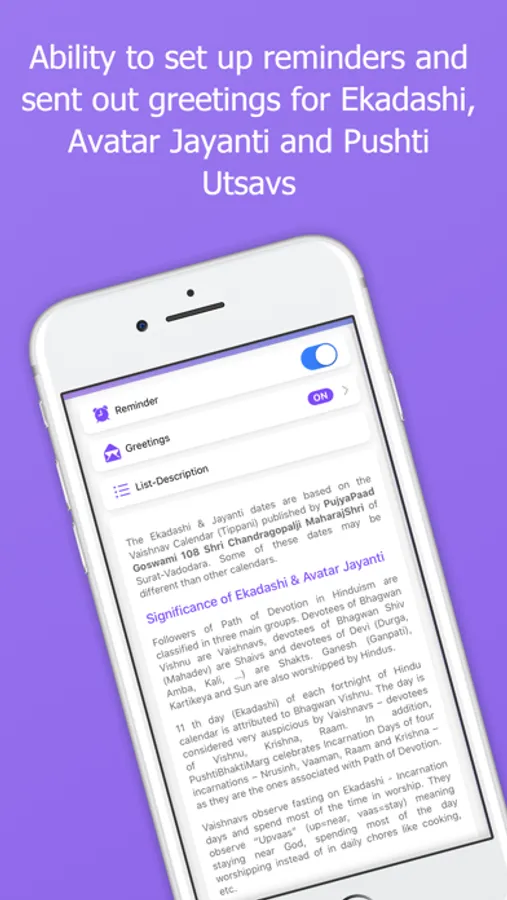 Ekadashi and Pushti Utsav list—reminder—greetings; Calculation of Vaishnav