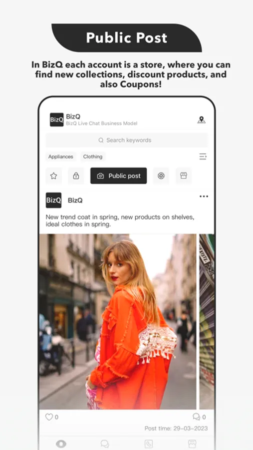 BizQ es una aplicación para empresas de venta de productos y redes sociales.
