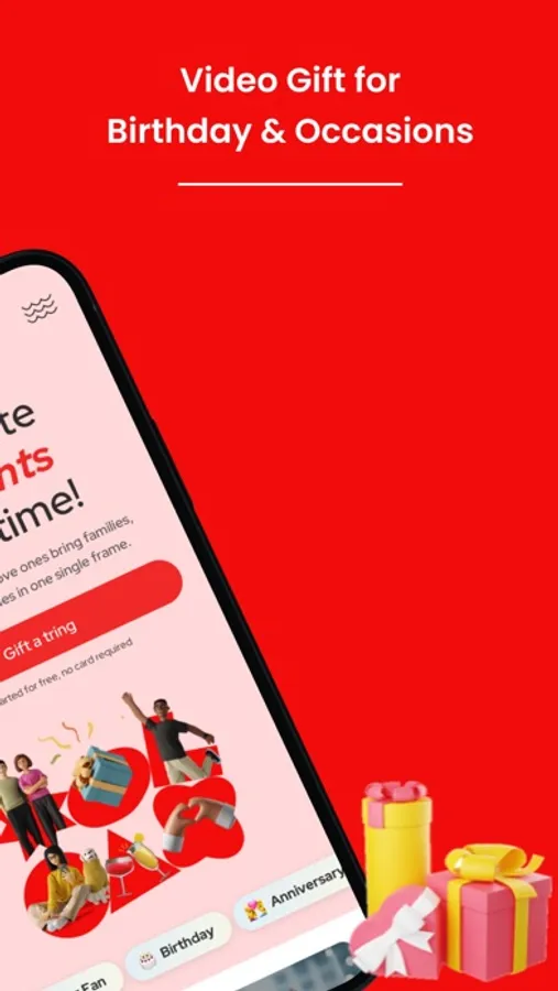 Tring will send you reminders and create videos for all kinds of occasions like birthday, anniversary, Festivals and much more. An eco-friendly gifting solution that gives back to the world with every video. By bringing people together to create a meaningful gift.