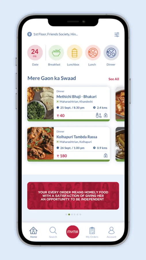 India is the country of tastes and every nearby family which is from different parts of our county has its unique food preparation. Myma concept will not only solve the problem of needy who are looking home food but also foodies can get real taste, authentic food of every region from nearby house. To serve everyone healthy and tasty food every housewife is offering food which she prepares for her family.