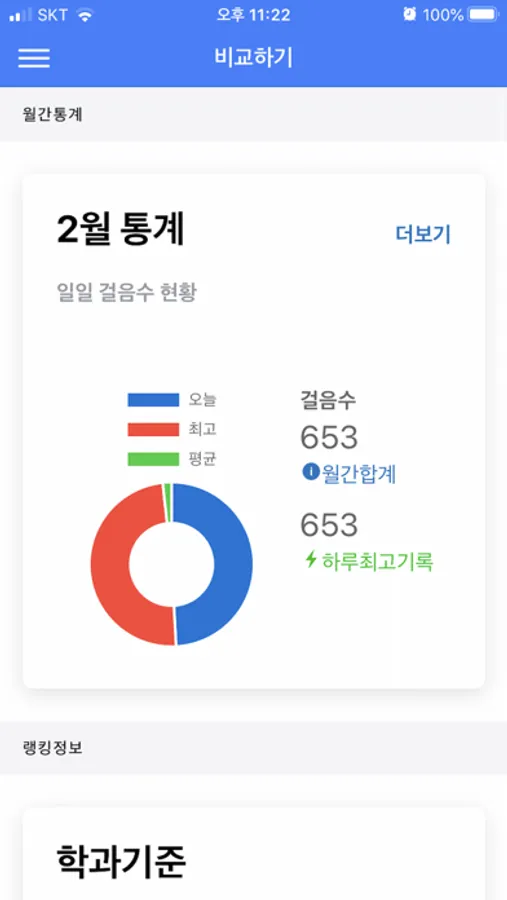 본 어플리케이션은 휴대폰 소지자의 걸음을 측정하여 보여 드리며, 측정결과값을 다른 학우 및 교직원들과 비교할 수 있도록 합니다.