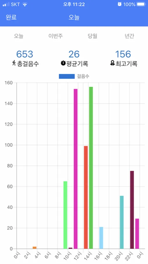 * 통계기능 : 일별, 주차별, 월별로 사용자의 걸음 수를 알려주는 통계기능