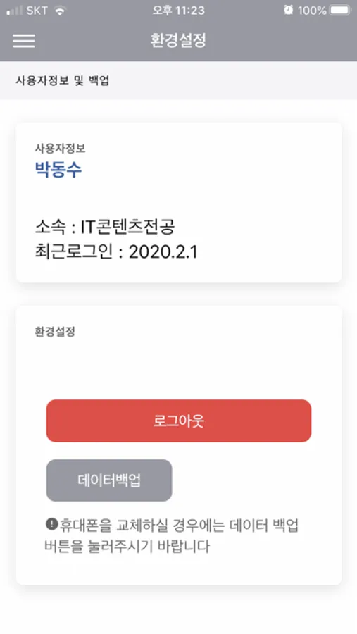 * 두걸음 챌린지 프로그램에 참여하시는 경우, 또는 휴대폰 기종을 교체하시는 경우 어플리케이션에 접속하여 [환경설정] 메뉴의 [데이터백업] 버튼을 눌러주시기 바랍니다.