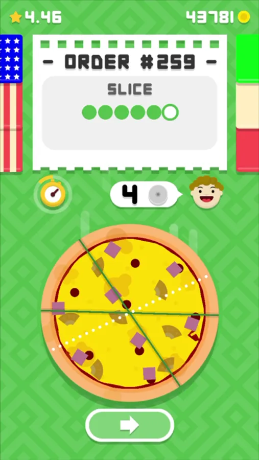 At Perfect Pizza you're rated on each aspect of the pizza creation process, from applying sauce and cheese, to cutting up the perfect slice so be careful not to burn the pizza or overlap all the toppings because you'll lose your tip if you do, not to mention your reputation as a pizza chef! Each pizza you serve contributes to your overall average rating as a chef, to avoid any bad ratings you can always issue a refund but you'll forfeit your earnings for that pizza if you do! Unlock new pizza boxes and themes with your earnings to add some flare to your experience and unlock many toppings as you play to keep your hungry customers happy!