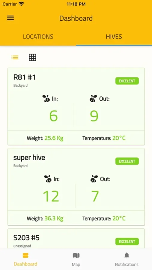 * Temperature monitor: Monitor the temperature, humidity, and CO2 levels inside of your hives.