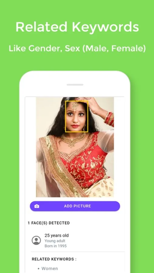 - After scanning You’ll find the guessed age with some interesting characteristics like gender, status, situation, feeling, etc.