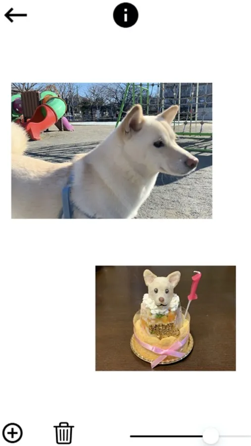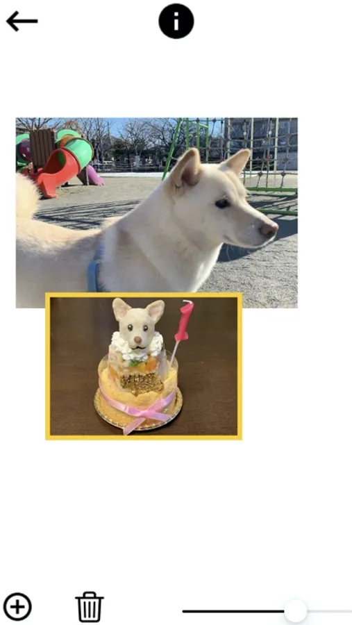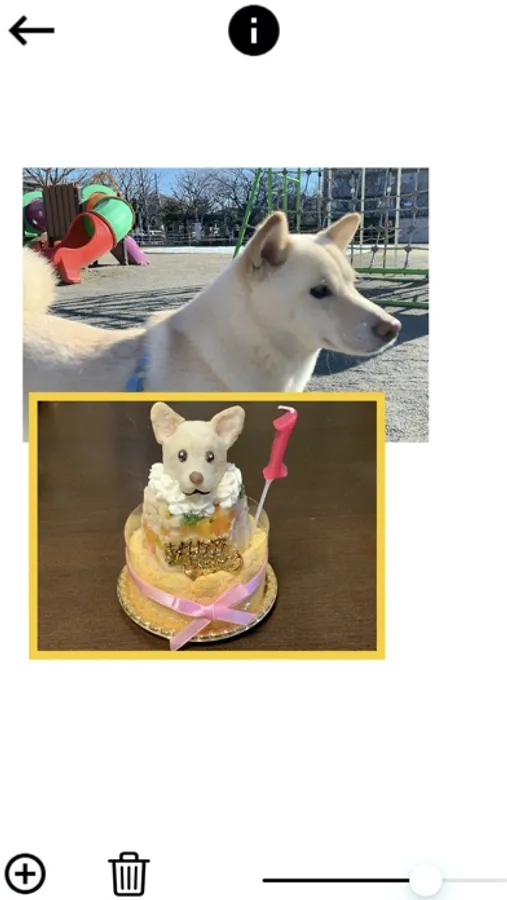 In the setting mode, add the image to be displayed with the “+” button or "Camera" button at the bottom left. When you tap the displayed image, it will be in a state with a yellow frame. In this state, you can move the image by dragging and zoom in and out by pinching. you can also flip and rotate the image.