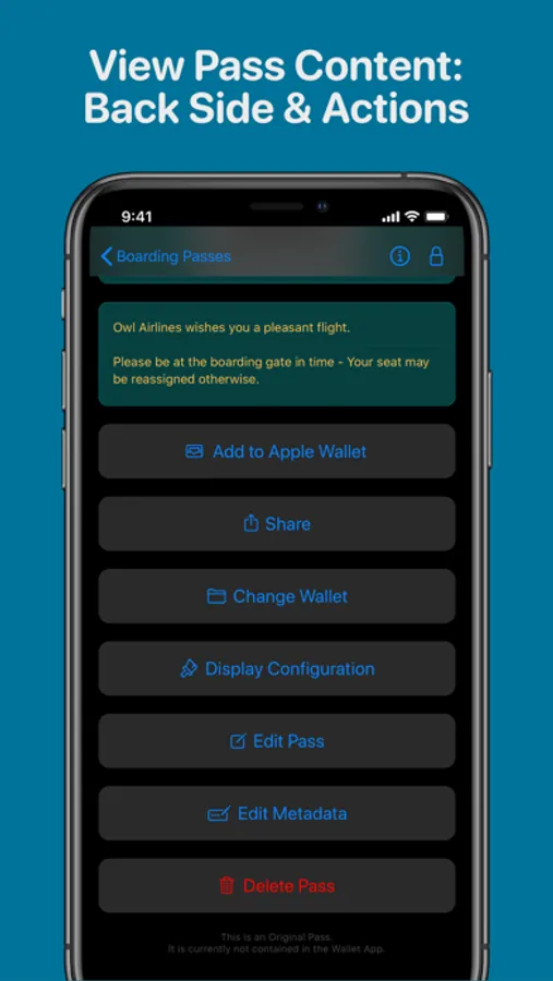 Please note: Passes created or edited with Wallet Box cannot be added to the Wallet App as it only displays signed passes, which cannot be securely created on an iPhone.