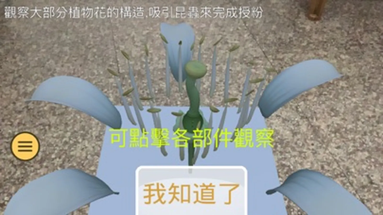 這是一款可以讓小學生五年級學習自然科之太陽與植物單元的自學輔助教材。透過擴增實境AR讓學生可以在真實環境中即時的以不同視角觀察太陽與植物的變化。