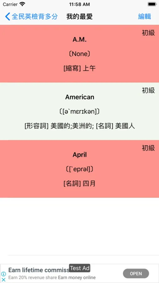 - 我的最愛功能,方便將不熟的單字記錄蒐藏