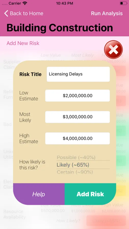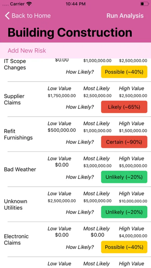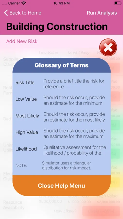 Software solutions that typically do this are often complex and expensive. This app provides a simple and cost-effective solution at your fingertips. It is your first step in moving away from a subjective list of assumptions and uncertainties to a much more effective way to consider risk.