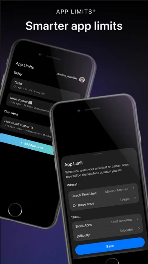 - Breaks: Use apps without mindless scrolling. Choose the app you want to use, write your intention, and set a timer.