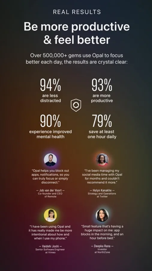 "Weird to think that an app would make me use my phone less but Opal is the only thing helping me focus on deep work days" - Zach