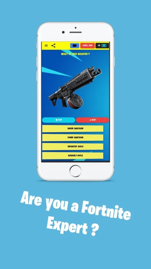 With this app, you can test how much an expert you are in Fortnite by guessing our quizzes about all the famous Battle Royale dance moves & emotes. Besides that, we also have quizzes about the cosmetics, the weapons, and the skins in the game for you to guess so that you can test your knowledge about the game or to expand it.