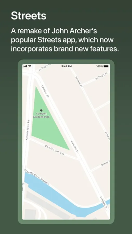 John Archer has given his exclusive permission for this remake of his popular Streets app, which now incorporates new features including a modernised real map and a new "gyro crib".