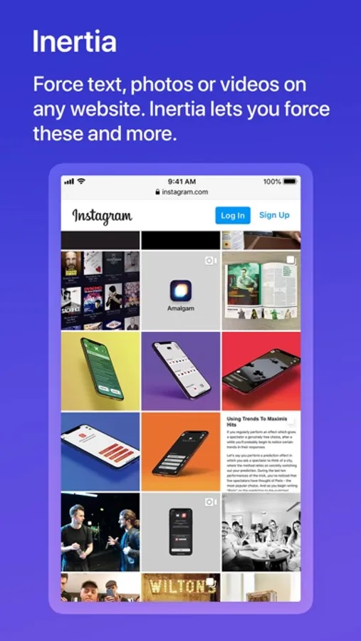 Force text, photos and videos on any website, without hiding the screen from the spectator. Inertia works great as a prediction effect, or combined with your favourite revelation.