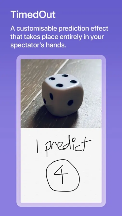 A customisable prediction effect that's all in your spectator's hands. Predict a number, dice roll, ESP symbol, star sign or more.