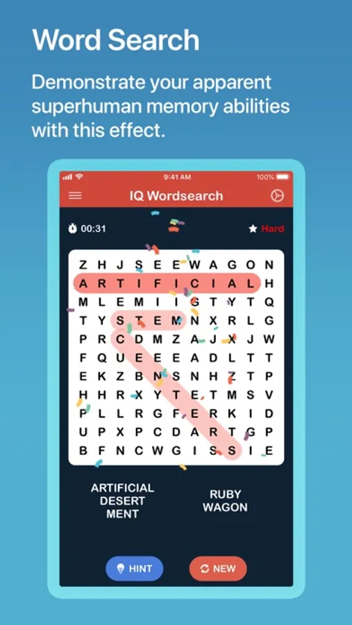 Seemingly demonstrate superhuman memory abilities with this word search game from Harry De Cruz. Although you only look at the word search for a couple of seconds, you can reveal the positions and directions of all words hiding within.