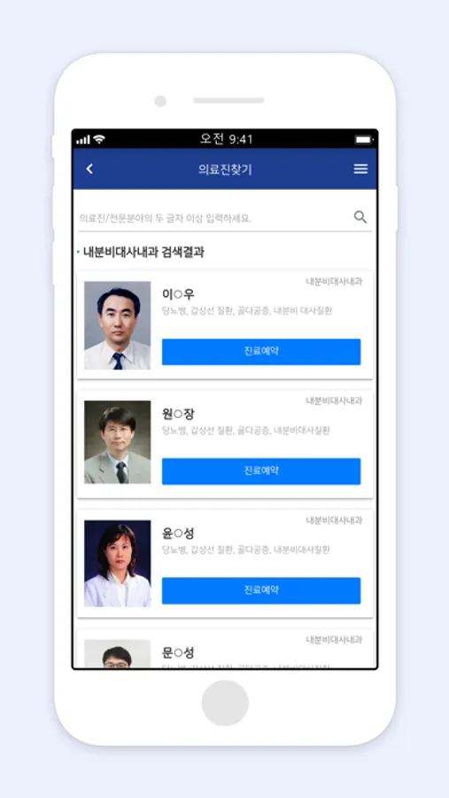 모바일앱에서 진료예약을 간편하게 할 수 있습니다.