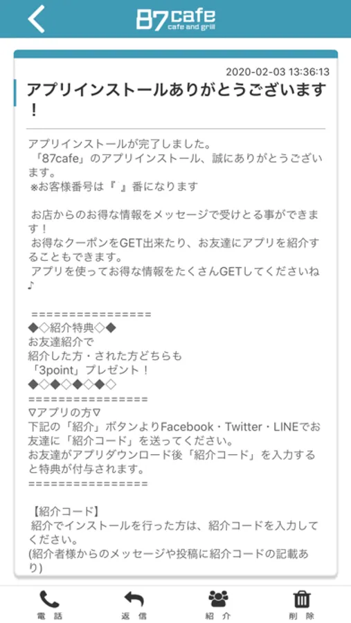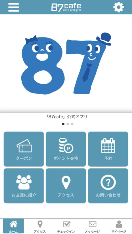 このアプリでは、87cafeの最新情報の受け取りや便利な機能を使う事ができます。