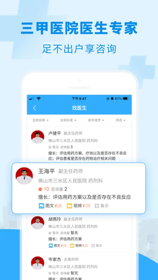「在线咨询」支持图文咨询、视频咨询、名医专家将在线答疑解惑