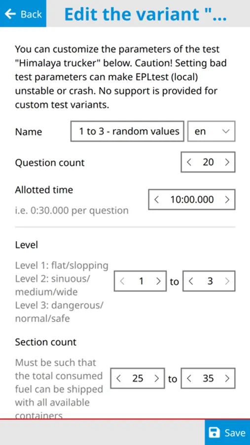 Training is good, de-training is better! Change the tests parameters at will to prepare you for all eventualities, and come wih a huge advantage at the exam.