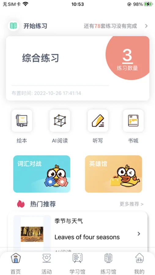 树鱼英语是一款智能学习英语的软件、内容包括习题、口语听力的练习等等。旨在,学会英语知识内容,采用游戏化的元素,提高学生的学习兴趣