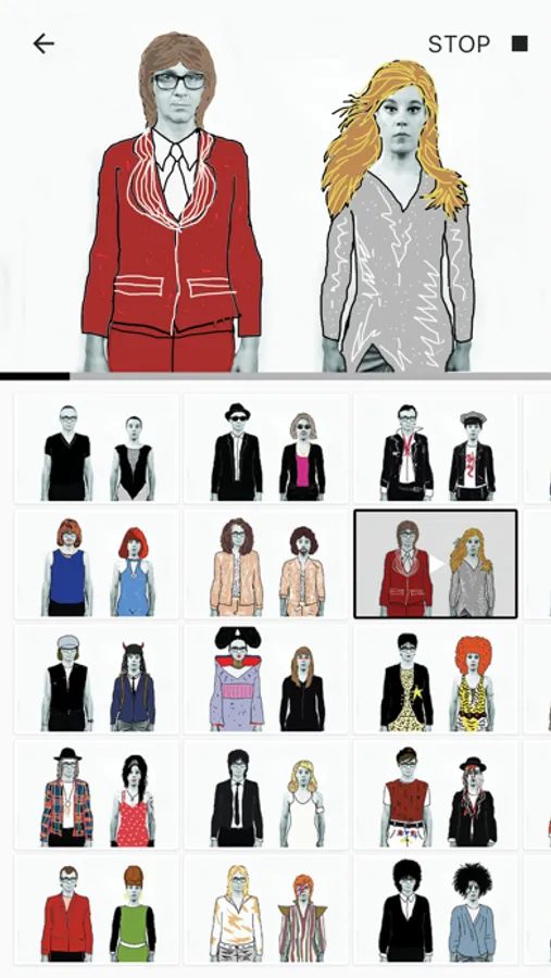 Choisis parmi les déguisements de pop stars de tous les styles, de toutes les couleurs qui te plaisent et que portent à merveille tes deux nouveaux amis Hermance Vasodila et Arnaud D. de MOUSE DTC, et fais retentir les sonorités à l’aide de ton doigt.