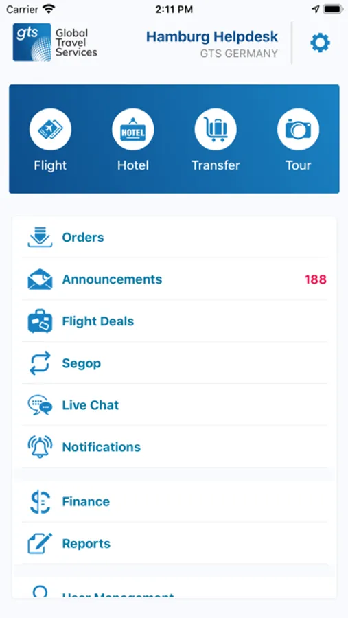 gtsfly Agent has a 7/24 call center support +49 40 87 96 99 88 that will assist you with all of your requests.