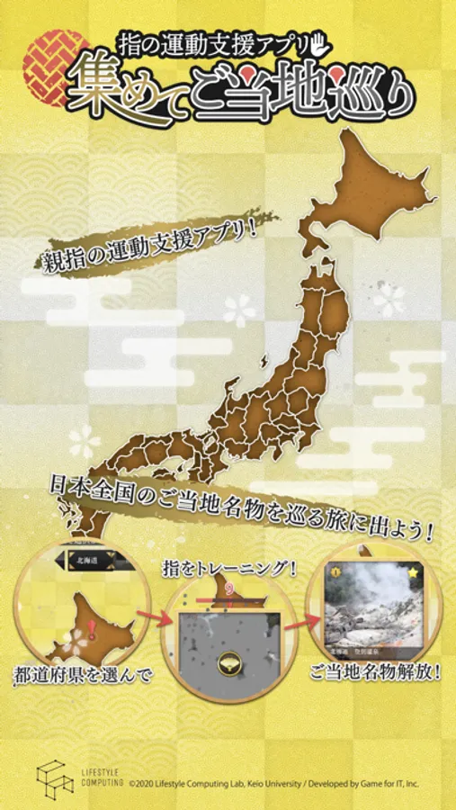 ご当地パネルを集めながら、親指の運動にこのアプリをご活用ください。