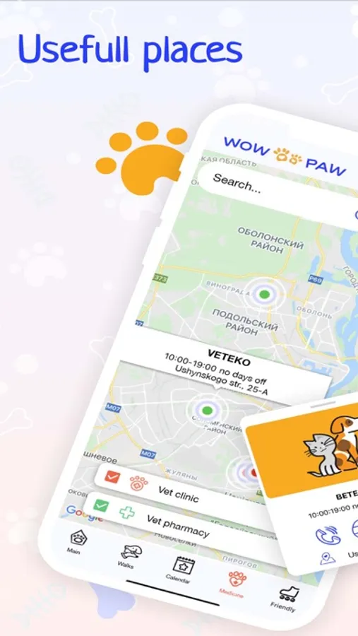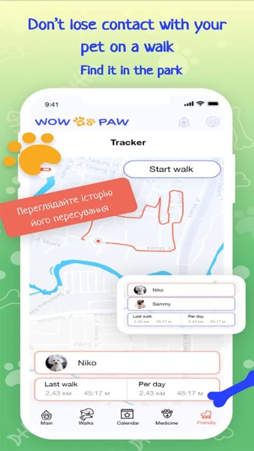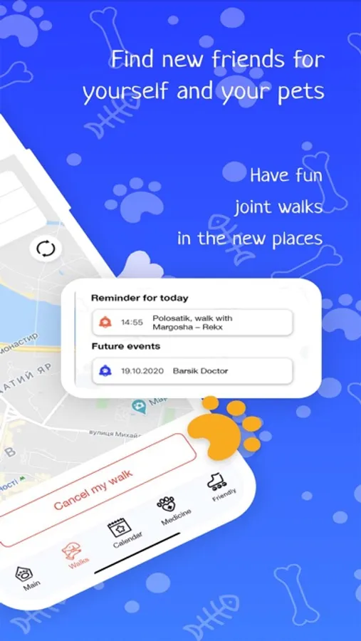 A calendar of important events, a medical card, walks with friends and much more will help you collect the whole life of your pet in your smartphone.