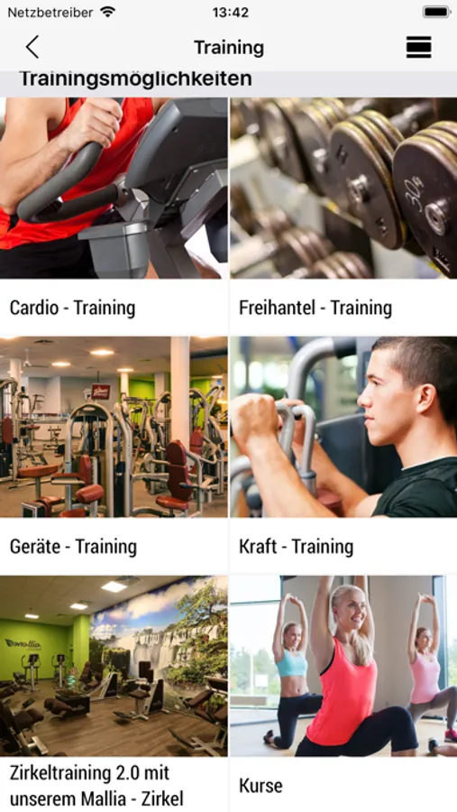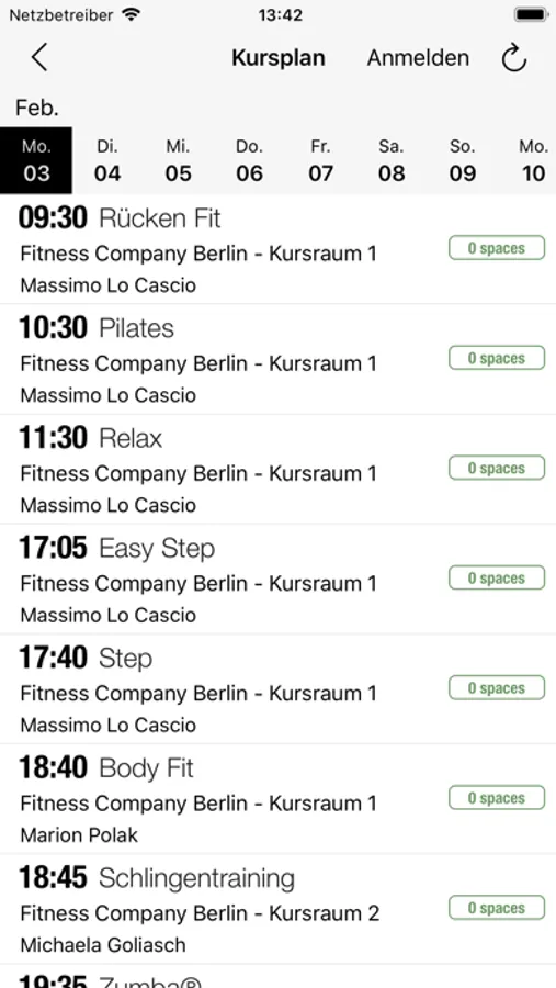 Direkter und aktueller Zugriff auf den Kursplan von überall: Für jeden Kurs kannst Du Details wie Zeit, Kursbeschreibung, Raum und Merkmale wie z.B. den Schwierigkeitsgrad einsehen.