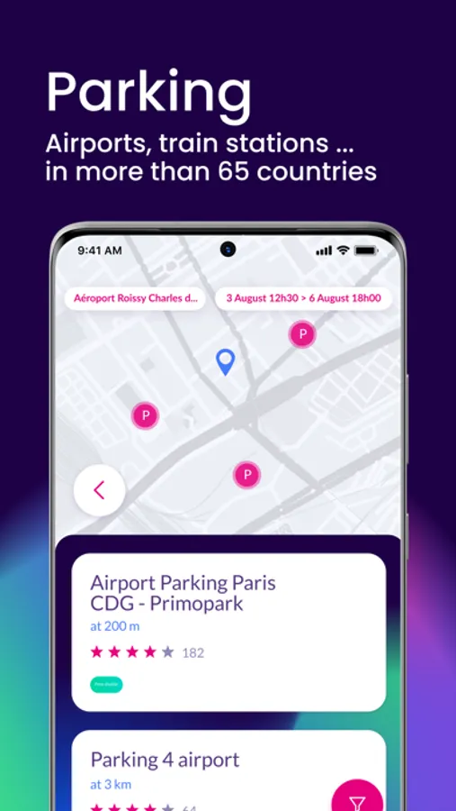 Find your ideal parking space among 500,000 available spaces in 65 countries.
